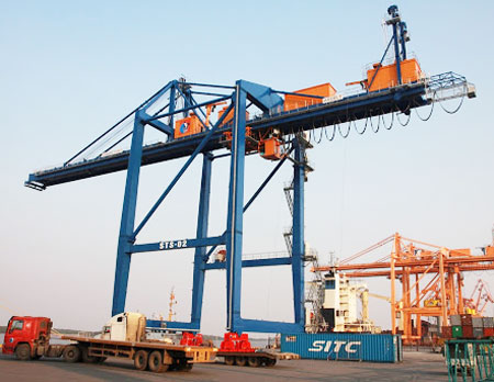 Đây là những cỗ máy lớn được sử dụng để di chuyển container và các hàng hóa nặng khác từ tàu thủy sang xe tải và tàu hỏa, và ngược lại. Có nhiều loại cần cẩu khác nhau được sử dụng tại các cảng, chẳng hạn như cần cẩu giàn, cần cẩu tàu vào bờ và cần cẩu di động.