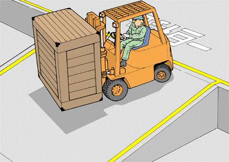 Xe nâng chuyển hướng bởi bánh sau, làm cho phần đuôi xe bị đưa ra ngoài, khiến nguy cơ lật xe khi cua gấp tăng cao.