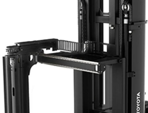 Xe nâng điện 3 chiều Toyota* đáp ứng toàn bộ các yêu cầu này bằng khả năng xoay ngang 180°, giúp xử lý pallet từ hai bên kệ mà không cần quay thân xe. Đây là yếu tố quyết định cho các lối VNA chỉ rộng từ 1.5–1.8 mét.