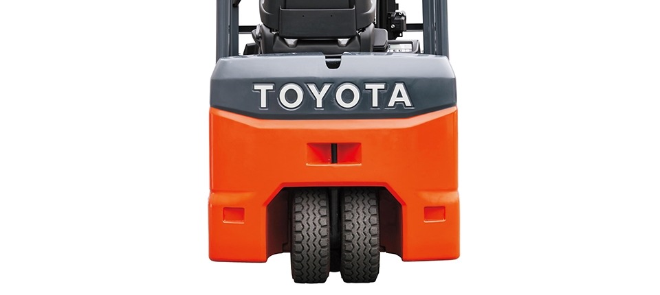 Công nghệ double rear tires và center-pin swing giúp xe đạt độ ổn định ngang tương đương dòng xe 4 bánh. Khi nâng cao hàng hóa, hệ thống Active Mast Tilt Control tự động điều chỉnh góc nghiêng, ngăn chặn đổ tải – một trong những tính năng an toàn đặc trưng của Toyota.
