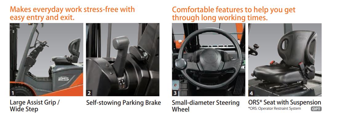 Ghế ngồi giảm xóc ORS: Tăng sự thoải mái trong thời gian vận hành dài.