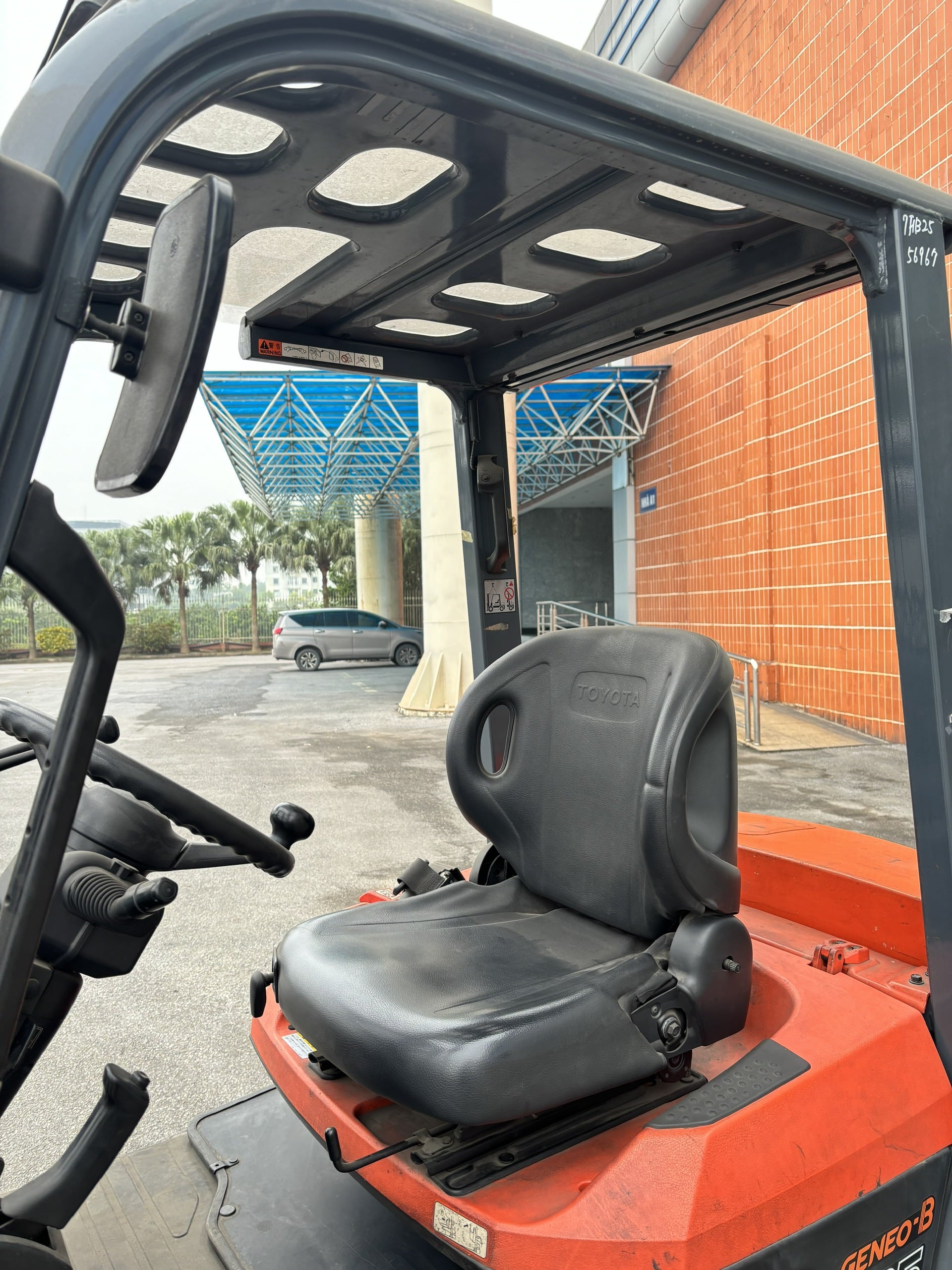 Xe nâng điện ngồi lái hiệu Toyota Số khung: 7FB25 - 56967 Sức nâng tối đa: 2500kg tại tâm nâng 500mm Chiều cao nâng tối đa: 3000mm Sản xuất năm: 2015 Xuất xứ: Nhật Bản Hàng chưa qua sử dụng tại Việt Nam |