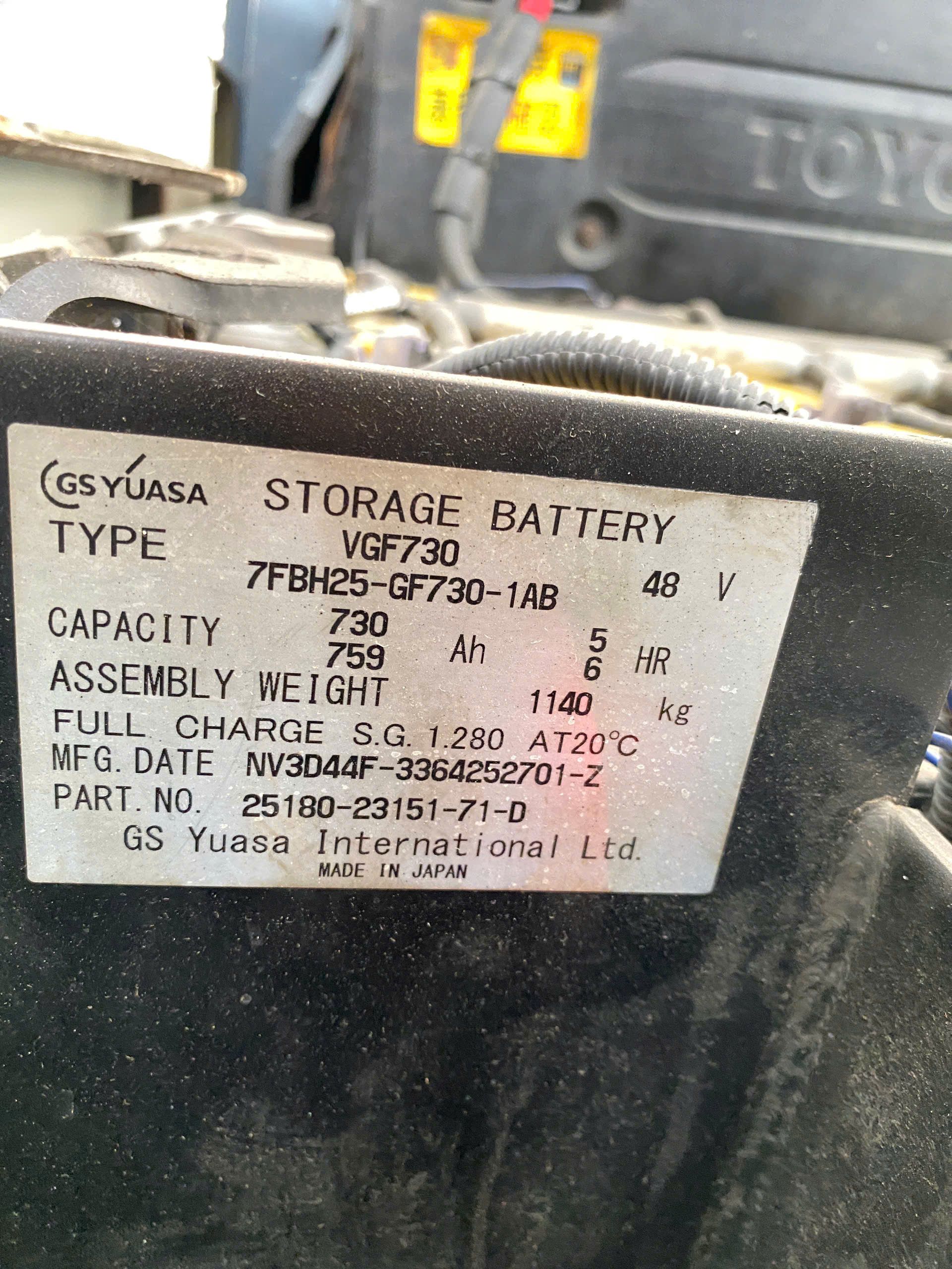 Thông số bình điện Xe nâng điện cũ ngồi lái 2.5 tấn Toyota 7FB25