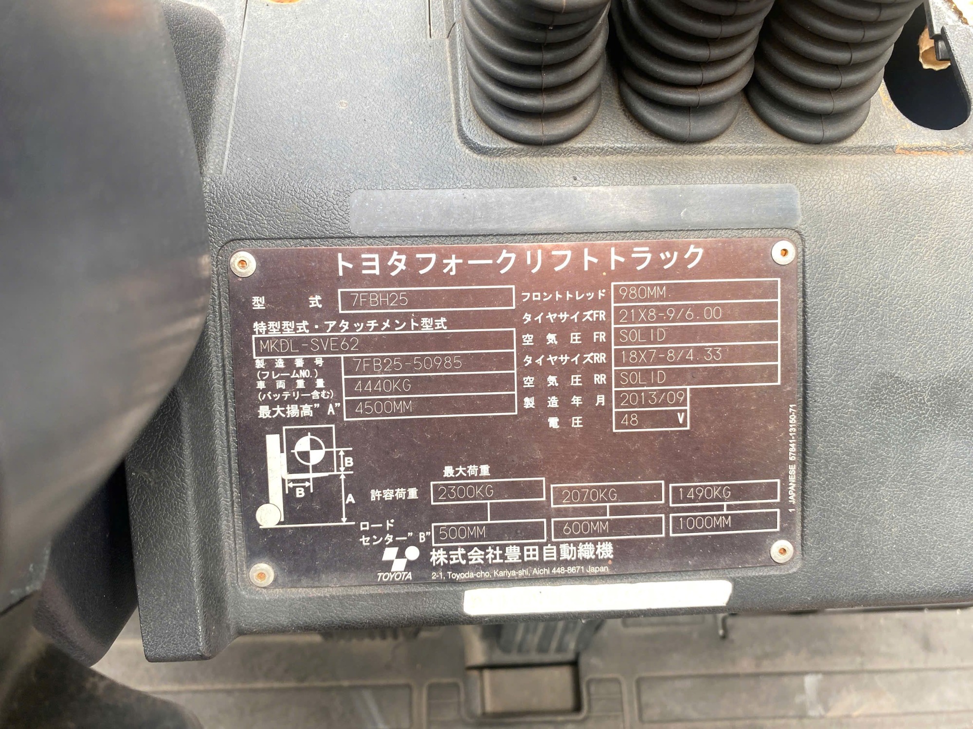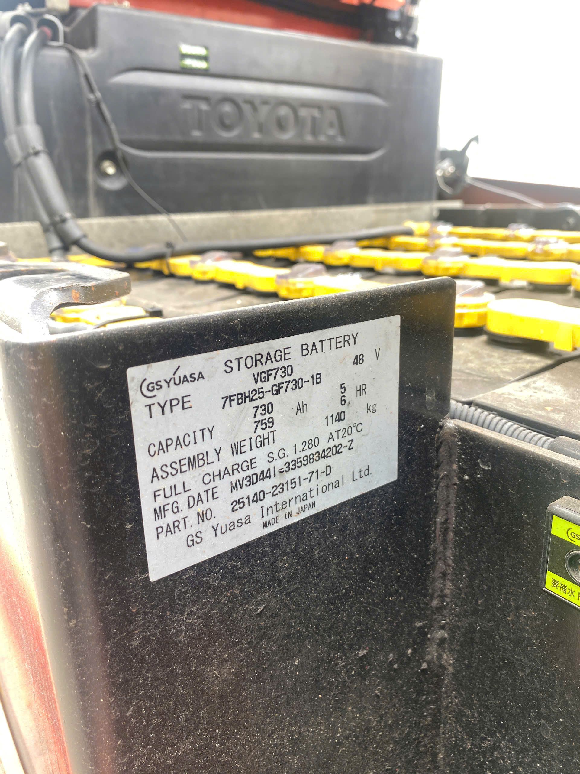 Thông số bình điện Xe nâng điện cũ ngồi lái 2.5 tấn Toyota 7FBH25