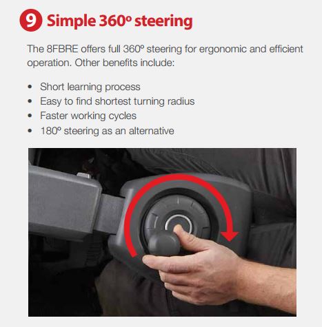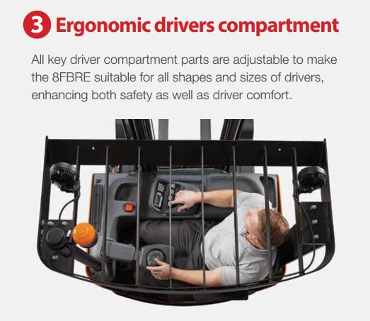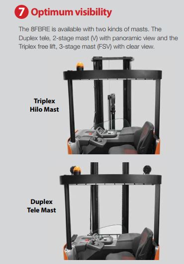 Xe nâng điện 8FBRE Series đảm bảo độ ổn định cao ngay cả ở mức tải lớn và chiều cao tối đa.