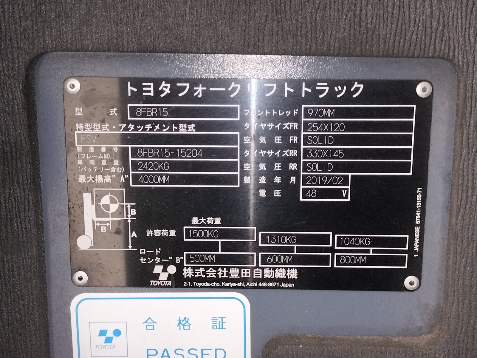 BẢNG THÔNG SỐ KỸ THUẬT XE NÂNG ĐIỆN 8FBR15